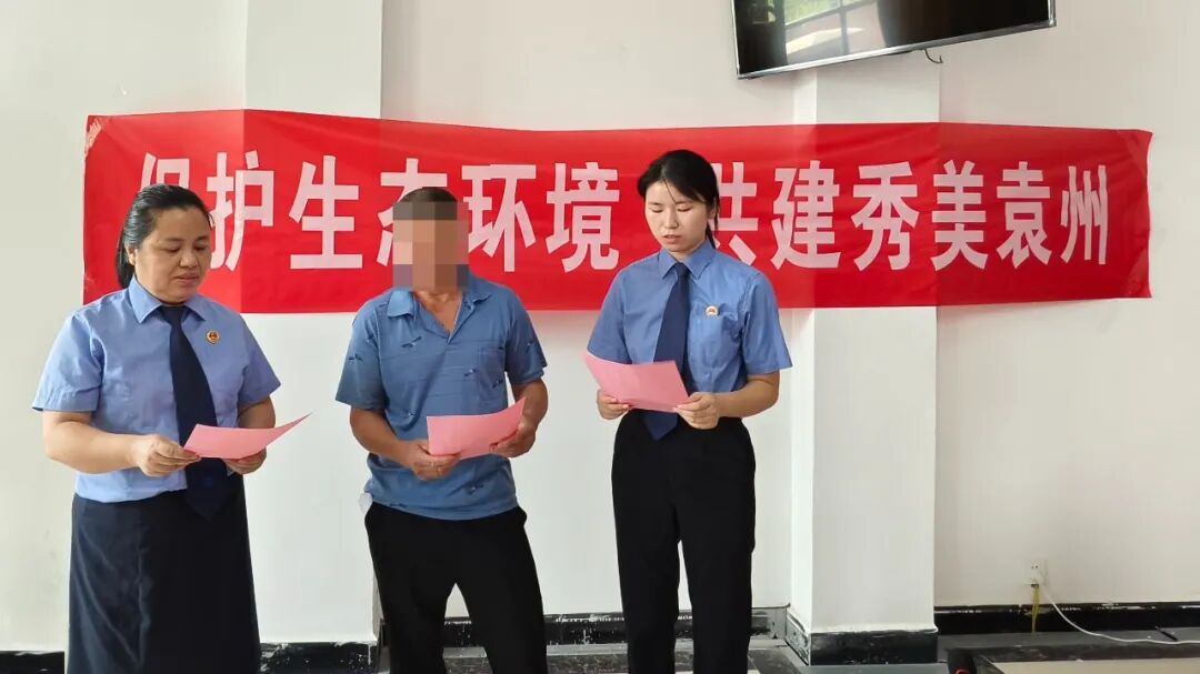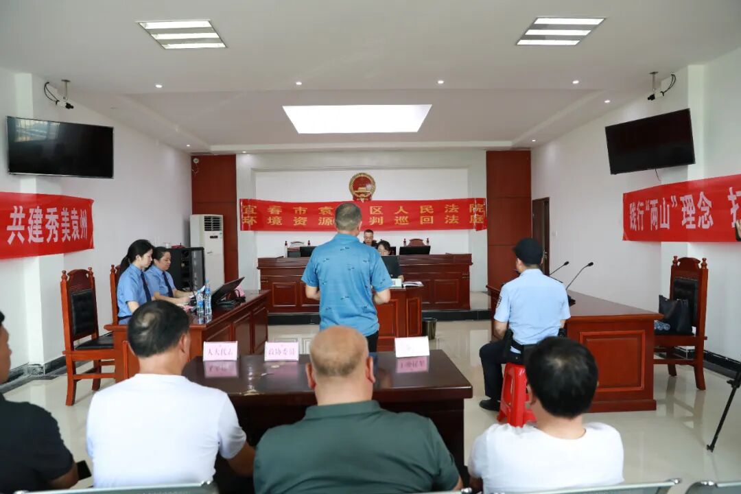 全国生态日来临之际,袁州区人民法院在某乡镇派出法庭对该案公开开庭审理,袁州区人民检察院出庭支持公诉,当地人大代表、政协委员、群众代表、干部代表等应邀到场旁听。