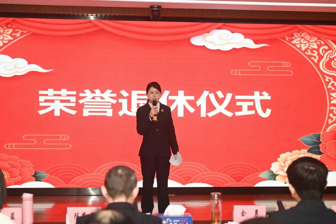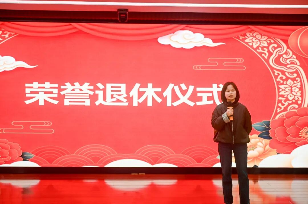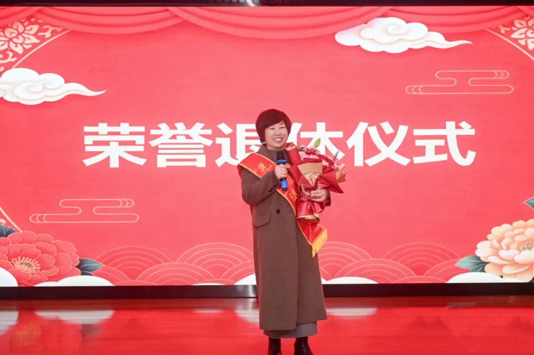 活动进入庄重的致敬环节,为姜晚秀同志举行荣退仪式。办公室主任何仕霞送上真挚祝福。