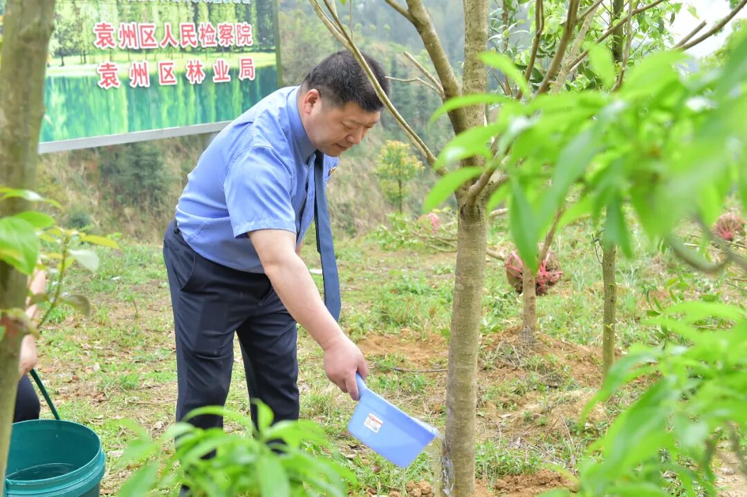 为深入贯彻落实习近平生态文明思想,牢固树立和践行“绿水青山就是金山银山”理念,4月1日,袁州区人民检察院第三党支部全体党员前往新坊镇检察公益诉讼补植复绿基地开展“爱绿 植绿 护绿 兴绿”主题党日活动,党组书记、检察长陈文强以普通党员身份参加。