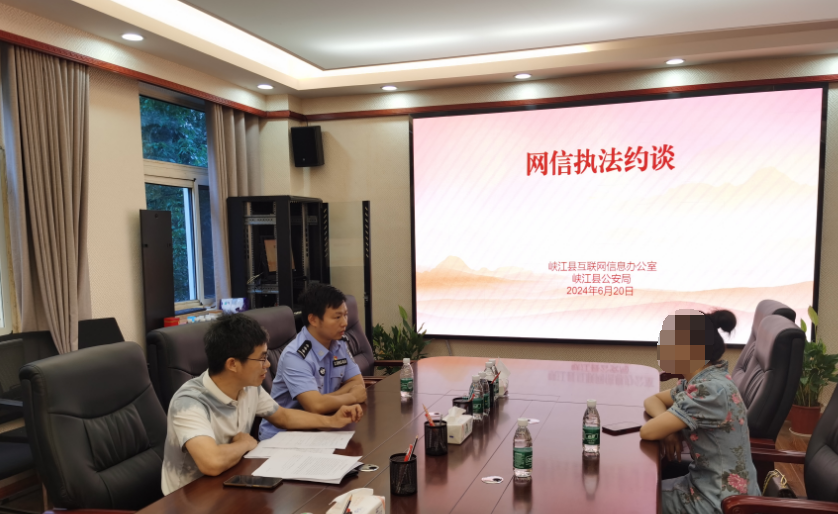 ▲民警联合峡江县互联网信息办公室对江某进行约谈。