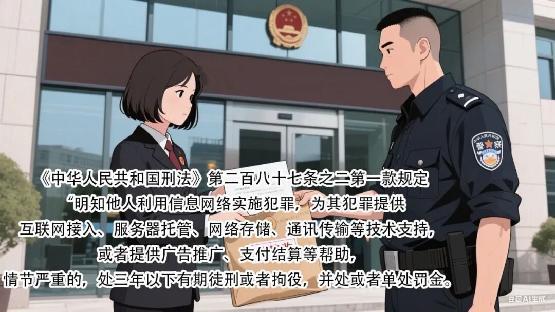 明知他人利用信息网络实施犯罪,为其犯罪提供互联网接入、服务器托管、网络存储、通讯传输等技术支持,或者提供广告推广、支付结算等帮助,情节严重的,处三年以下有期徒刑或者拘役,并处或者单处罚金。
